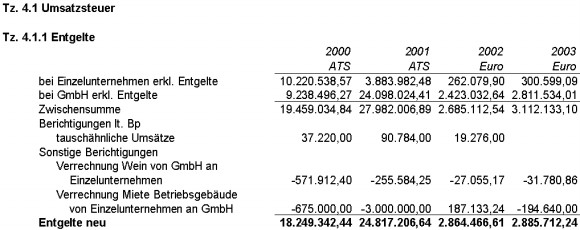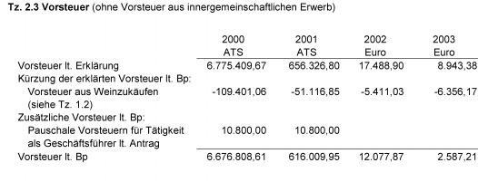 - Aus dem Bericht des Betriebsprüfers über die im Auftrag des Unabhängigen Finanzsenates erfolgte Ermittlung der Besteuerungsgrundlagen 2000 - 2003 inklusive der auf die Sacheinlage entfallenden Umsätze, Vorsteuern und Einkünfte (E-Mail, 16. Mai 2011):