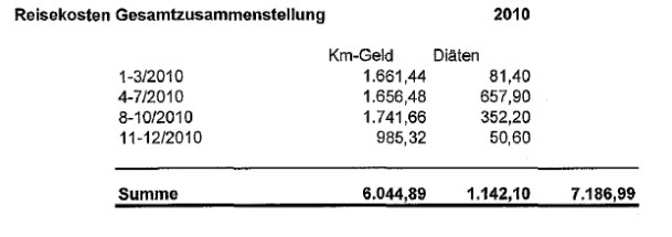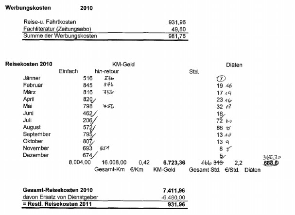 Beigeschlossen war folgende neue Reisekostenaufstellung:
