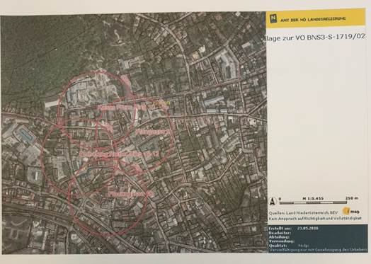 "In ihrer Gegenschrift legt die verordnungserlassende Bezirkshauptmannschaft Baden dar, dass auf Grund von störenden 'Vorfällen' im Jahr 2017 und der Berücksichtigung, dass 'bei Versammlungen mit gegenläufigen Zweck am selben Standort Störungen der öffentlichen Ordnung befürchtet werden mussten' (sic!), welchen auf Grund der 'Menschenmassen' nicht zu begegnen gewesen wäre, vier Schutzbereiche für die Versammlungspunkte der Versammlung 'Pro Milch – Warum Milch ein wichtiges Nahrungsmittel ist', von je 150 Metern festzulegen waren.