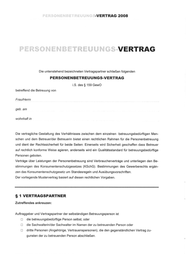 Der B stellt fest, ob der Personenbetreuer die notwendigen Voraussetzungen und Qualifikationen für die vermittelte Tätigkeit besitzt. Dem Personenbetreuer sind die Vorgaben des B bekannt. Sie entsprechen dem Gewerbeumfang der selbständigen Personenbetreuung laut Anhang. Der B verpflichtet sich regelmäßige Qualitätskontrollen durchzuführen, wobei er sich ein Bild von der Pflege und Betreuungssituation zu verschaffen hat und falls notwendig geeignete verkehrsverbessernde Maßnahmen einzuleiten.