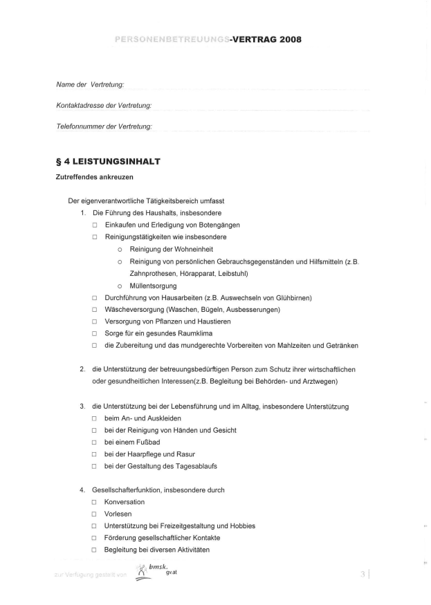 - Zu Beginn jeder Betreuung sind verschiedene Formalitäten zu erledigen, wie zB der Werkvertrag, Förderansuchen, Gewerbekontrolle, Kontakt zur Bezirkshauptmannschaft bei Mindestsicherungsanträgen und vieles mehr. Alle diese Formalitäten werden von den Mitarbeitern des B erledigt und nachbearbeitet.