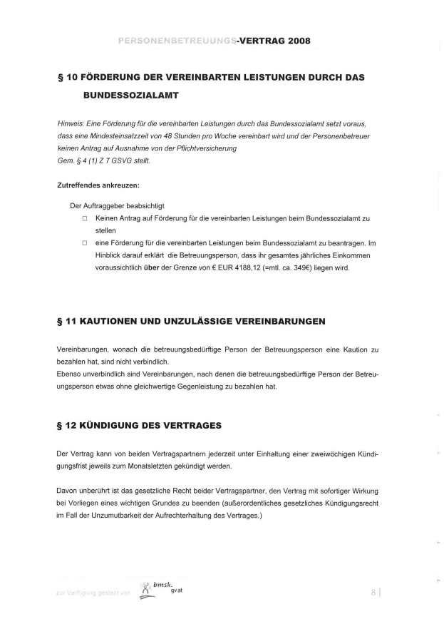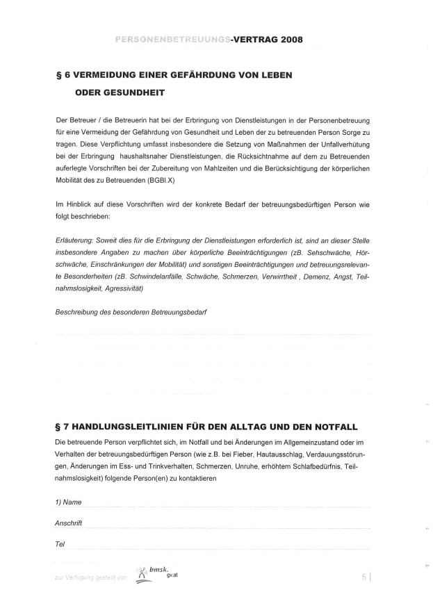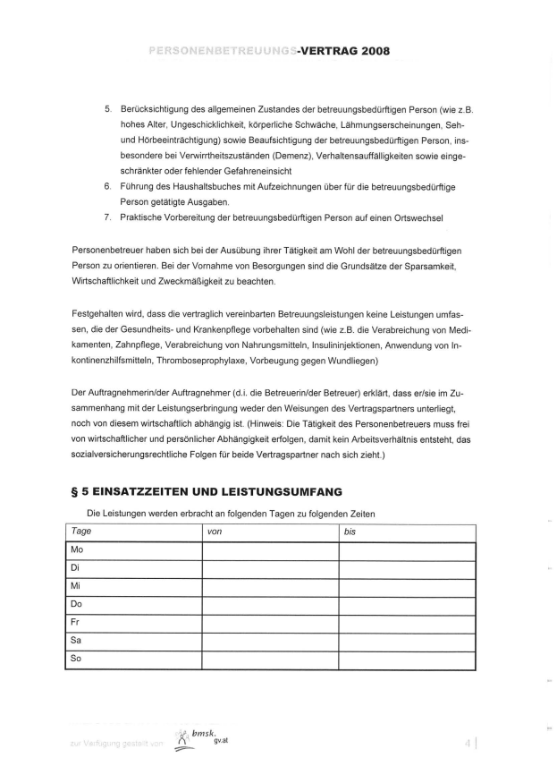 „Der Vermittlungsauftrag, der zwischen dem B und der zu betreuenden Person abgeschlossen wird, legt fest, in welchem Umfang eine Betreuung oder Pflege stattfinden soll. Auch sind hier die Kosten geregelt, die von den zu Betreuenden an die Betreuer geleistet werden.