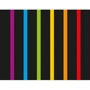[3] Die Marke bestehe aus einer Kombination von vertikal nebeneinander in gleichen Abständen angeordneten Streifen in der Farbtonreihenfolge von links nach rechts violett (HKS 29), blau (HKS 48), grün (HKS 66), gelb (HKS 4), orange (HKS 6) und rot (HKS 13) auf schwarzem (HKS 88) Hintergrund, wobei die Streifen jeweils die gleiche Breite aufweisen. Die Marke sei originär unterscheidungskräftig.