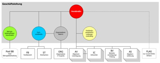 Die Gesamtleitung des Finanzamtes erfolgt durch die/den Vorständin/Vorstand, der/dem für die fachliche Leitung eine Fachvorständin/ ein Fachvorstand zur Seite gestellt wird (§ 11 AVOG 2010).