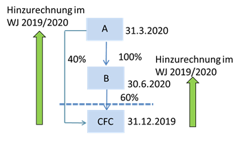 1248dm ff | Es werden Aussagen zur Durchführung der Hinzurechnung aufgenommen, insbesondere zum Ausmaß der Hinzurechnung (Ermittlung der Hinzurechnungsquote), deren Zeitpunkt sowie der Ermittlung der hinzuzurechnenden Passiveinkünfte. Die Ausführungen werden anhand von Beispielen veranschaulicht. |
