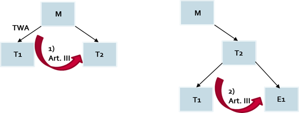 - für Leistungsbeziehungen zwischen Übertragendem und Übernehmendem bezogen auf das übertragene Vermögen im Anwendungsbereich von Art. III und Art. VI UmgrStG bei Vorliegen einer entsprechenden Leistungsvereinbarung ( § 18 Abs. 3 UmgrStG idF AbgÄG 2023).