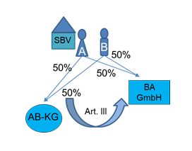 Die natürlichen Personen A und B sind zu je 50% am fixen Kapital der inländischen AB-KG und zu je 50% an der inländischen BA-GmbH beteiligt. Die Beteiligung am variablen Kapital von A und B weicht von deren Beteiligung am fixen Kapital ab. Zum 31.12.X1 bringen A und B ihre Mitunternehmeranteile an der AB-KG in die BA-GmbH gemäß Art. III UmgrStG ein. Die dabei entstehende Äquivalenzverletzung wird durch eine alineare Gewinnausschüttung ausgeglichen.