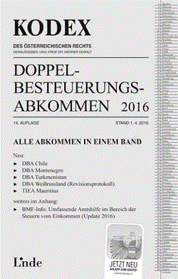 Alle Abkommen in einem Band! Neu: DBA Chile – DBA Montenegro − DBA Turkmenistan − DBA Weißrussland (Revisionsprotokoll) − TIEA Mauritius. Weiters im Anhang: BMF-Info: Umfassende Amtshilfe im Bereich der Steuern vom Einkommen (Update 2016).
