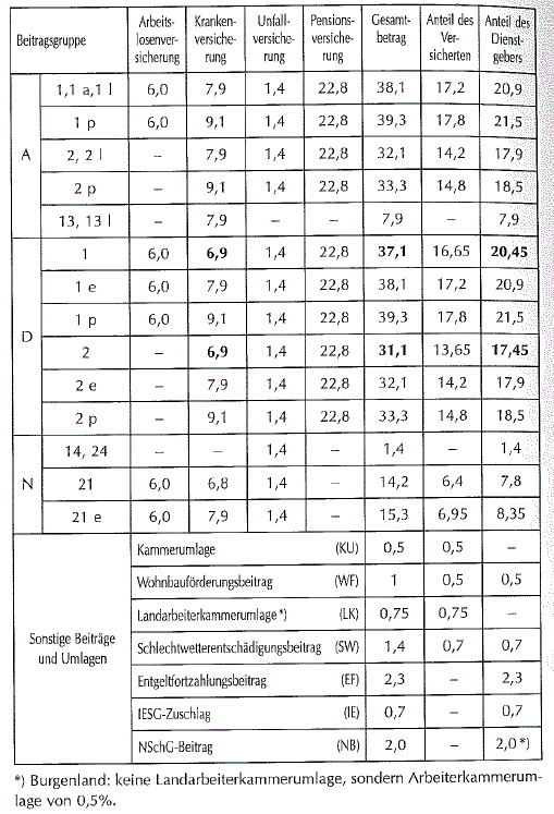 Beitragsgruppen und Beitragssätze ab Beitragszeitraum Juli 1997