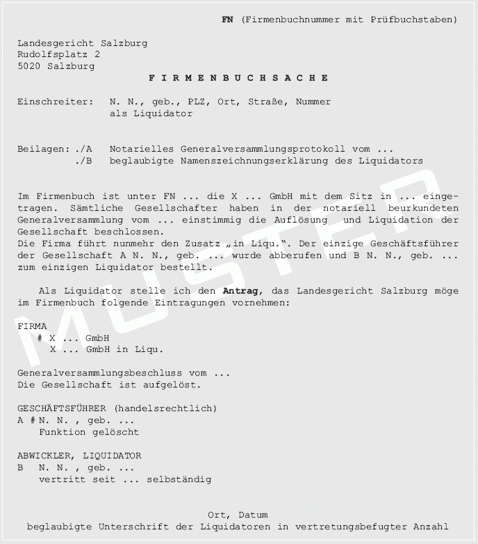 Anmeldung der beschlossenen Auflösung einer GmbH