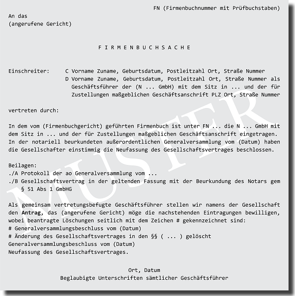 Nach der E OGH 24.10.2019, 6 Ob 100/19b (GES 2020, 24 – in diesem Heft) kommt dem Firmenbuchgericht bei Neufassung des Gesellschaftsvertrages eine Prüfungskompetenz hinsichtlich des gesamten, neu gefassten Gesellschaftsvertrages zu, auch wenn diese inhaltlich nicht geänderte Bestimmungen betrifft.