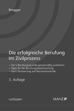 Das von em. RA Hon.-Prof. Dr. Walter Brugger verfasste Werk über die erfolgreiche Berufung im Zivilprozess ist jüngst in 3. Auflage erschienen. Der Praxisleitfaden stellt alle Schritte des Berufungsverfahrens chronologisch dar, geht auf die formalen und inhaltlichen Erfordernisse der Gestaltung einer Berufung ein und behandelt insbesondere auch die nach der ZPO bestehenden Besonderheiten für das Verfahren in zweiter Instanz. Die Neuauflage wurde um die neueste Judikatur, zusätzliche Praxistipps zur Berufung und zum Parteiantrag auf Normenkontrolle erweitert. Das Werk enthält zahlreiche Praxistipps, Hinweise auf häufige Fehlerquellen, Praxisbeispiele und Schriftsatzmuster bzw Formulierungsvorschläge. Auch in der Neuauflage ist das gegenständliche Werk sehr zu empfehlen und sollte in keiner Anwaltsbibliothek fehlen.