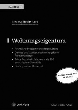 Das von RA Dr. Alexander Illedits und Dr. Karin Illedits-Lohr verfasste Werk zum Wohnungseigentum ist jüngst in 7. Auflage erschienen und widmet sich den häufigsten rechtlichen Problemen und deren Lösungen, die im Zusammenhang mit Wohnungseigentum auftreten. Die Probleme werden anhand von zahlreichen Praxisbeispielen erörtert, sodass die trockene juristische Materie durch mehr als 800 tatsächlich entschiedene Streitfälle leichter verständlich wird. Das Werk dient nicht nur Juristen, sondern eignet sich aufgrund der praktischen Beispiele und Muster für diverse vertragliche Gestaltungen und Antragstellungen bei Gericht auch für Nichtjuristen, die sich mit einem aktuellen wohnungseigentumsrechtlichen Problem konfrontiert sehen. Aktuell wurden insbesondere die Änderungen durch die WEG-Novelle 2022 eingearbeitet. Berücksichtigt wurden weiters neben der aktuellen wohnrechtlichen Judikatur auch das Heiz- und Kältekostenabrechnungsgesetzes in der Fassung der Novelle 2021.