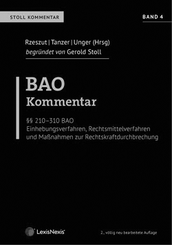 Eine genaue Kenntnis der BAO-Verfahrensbestimmungen ist bei der Rechtsdurchsetzung in Steuerfragen nicht selten erfolgsentscheidend. Der von em. o. Univ.-Prof. Dr. Gerold Stoll (†) begründete Kommentar zur BAO wird nunmehr nach mehr als 30. Jahren seit Veröffentlichung der Erstauflage unter neuer Herausgeberschaft von StB Mag. Robert Rzeszut, Univ.-Prof. i.R. Dr. Michael Tanzer und Präs. Dr. Peter Unger neu aufgelegt, wobei zum Auftakt Band 4 mit Kommentierungen zu den BAO-Abschnitten 6 und 7 (§§ 210 bis 310 BAO) erschienen ist. Der „Stoll-Kommentar“ wird sich mit Sicherheit auch in der Neuauflage als unverzichtbares Nachschlagewerk für alle mit Steuerverfahrensfragen betraute Personen erweisen.